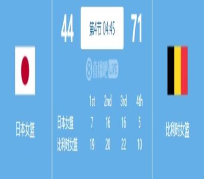 体育资讯8月4日报道宣 巴黎奥运女篮小组赛,第四节中段,比利时71-39领先日本。