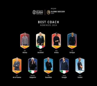 体育资讯11月14日报道宣称 环球足球奖公布了2024年最佳教练候选名单,安切洛蒂、瓜迪奥拉、阿隆索、阿尔特塔在列。