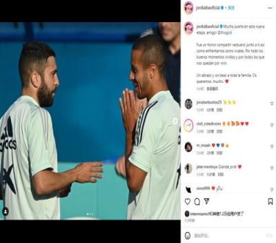 体育资讯7月9日报道宣称 今天,蒂亚戈宣布挂靴,他的前巴萨队友阿尔巴随后在社交媒体发文,为他送上祝福。