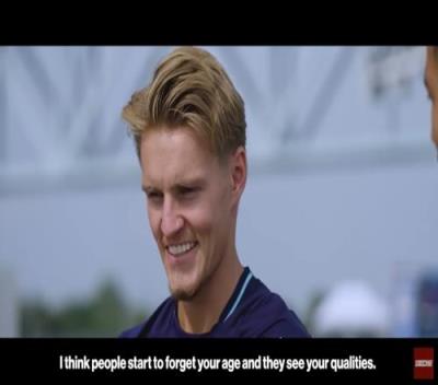 体育资讯8月18日报道宣 在阿森纳官方媒体中,球队队长厄德高和小将恩瓦内里谈到了与球员年龄有关的话题,厄德高坦言自己在皇马年少成名也带来了一丝烦恼。