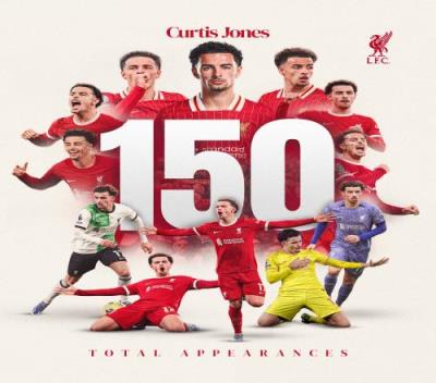 利物浦制作了海报纪念琼斯这一里程碑,并写道:利物浦人❤柯蒂斯迎来了为红军出战的第150场比赛