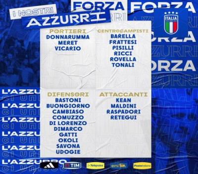 意大利队名单:巴雷拉、托纳利、小马尔蒂尼在列,萨沃纳入选