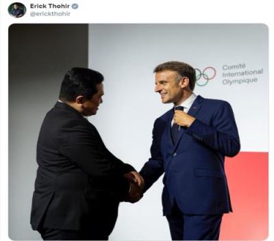 体育资讯7月24日报道宣称 距离2024巴黎奥运会开幕只剩两天,前国米主席、现印尼奥委会主席托希尔抵达法国首都,他在社交平台X(前身为推特)上发表了跟法国主席马克龙会面的消息,并表示希望奥运会以最好的方式进行。