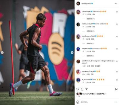 亚马尔晒出了自己在巴萨基地进行训练的照片,内马尔随后点赞。