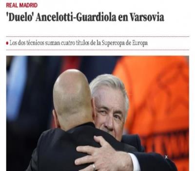 安切洛蒂曾两次以AC米兰主帅的身份赢得欧洲超级杯,另外两次则是执教皇马。而瓜迪奥拉则两次率领巴萨夺得这一赛事冠军,一次带领拜仁获胜,一次率领曼城夺冠。