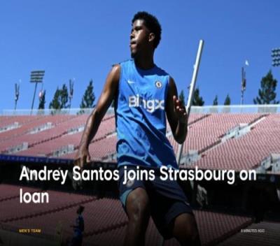 体育资讯8月2日报道宣称 切尔西官方消息,中场球员安德雷-桑托斯租借加盟法甲斯特拉斯堡,租期为1个赛季。