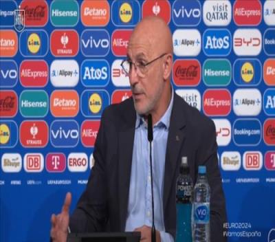 体育资讯7月10日报道宣称 欧洲杯半决赛,西班牙2-1逆转法国晋级决赛。赛后,西班牙主帅德拉富恩特出席发布会。比赛结束后,德拉富恩特在球场上与球员们拥抱,而在新闻发布会上,他也当众与球员们拥抱。