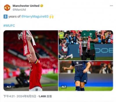 2019年8月5日,马奎尔以8700万欧转会费从莱斯特城加盟曼联,马奎尔加盟5周年之际,曼联官方社媒晒出他捧杯的照片。