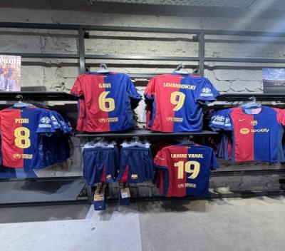 “俱乐部在官方商店内摆放了4个球员的预印制球衣,分别是亚马尔、佩德里、加维和莱万。明天一早,巴萨将公布新赛季球衣发布后的首日总营业额。”