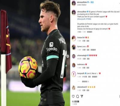 麦卡利斯特社媒:达成英超50场里程碑,并以大胜结束这一年