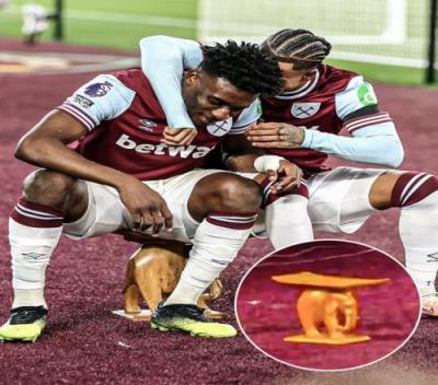 体育资讯12月22日报道宣称 英超第17轮,西汉姆主场1-1战平布莱顿。第58分钟,库杜斯扳平比分。进球后,他和队友萨默维尔做起了自己经典的坐凳子庆祝动作,和以往不同的是,库杜斯这次坐的是一把木凳子。