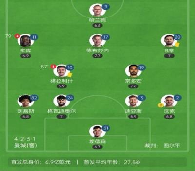 ESPN记者Mark Ogden表示:“瓜迪奥拉这场比赛只换2人是个奇怪的举动。中场缺少速度和目的性,努内斯和福登在替补席上坐着,但还指望德布劳内和京多安去覆盖中场。”