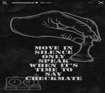 之前得知拉比奥特的言论后,亚马尔已经在社交媒体上做过回应,他晒出了一张海报,上面写着:“安静下棋,等到该说‘将军’的时候再说话。”