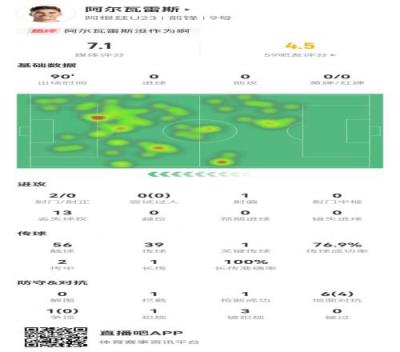 体育资讯8月3日报道宣称 阿根廷在奥运八强战0-1不敌东道主法国,主力前锋阿尔瓦雷斯本场数据如下: