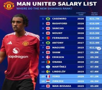 德转列曼联薪资榜:卡塞米罗、拉什福德、桑乔、芒特前四