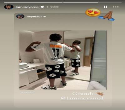 内马尔在社媒上转发了这张图片,而亚马尔本人也在社媒上作出了回应。