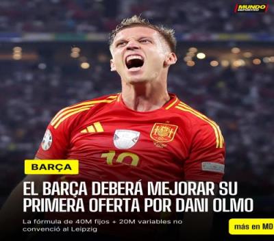 体育资讯07月25日报道宣称 据《世界体育报》报道,巴萨已经提交对奥尔莫的首次报价,固定转会费4000万欧+2000万欧奖金,但莱比锡并不满意这份报价。