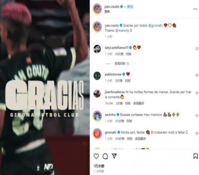 而赫罗纳官方账号也回应道:“祝你好运!我们会非常想念你的。”