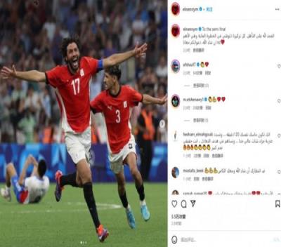 队长埃尔内尼在赛后晒出自己庆祝胜利的照片并配文:“晋级半决赛!我们现在的重点是下一场比赛,这是最重要的。愿真主保佑。”