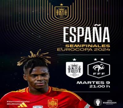 体育资讯7月9日报道宣称 北京时间7月10日凌晨3:00,欧洲杯半决赛,西班牙将对阵法国。赛前,西班牙国家队官方晒出海报,为本场比赛预热。