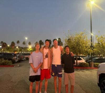 周琦社媒定位于美国洛杉矶,他晒出与胡明轩、胡金秋、黄荣奇的合照。