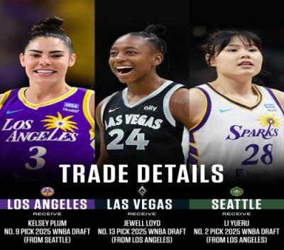 体育资讯01月27日报道宣称 据名记Shams报道,消息源透露,西雅图风暴将六届全明星球员朱厄尔-劳埃德交易至拉斯维加斯王牌队,这是一项多方交易,而三届全明星球员凯尔西-普拉姆被将交易至洛杉矶火花。