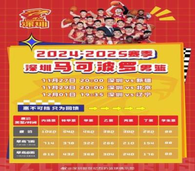 翘首以盼的常规赛第二阶段门票来了,11月27日20:00 深圳vs新疆、11月29日20:00 深圳vs北京、12月1日19:35 深圳vs辽宁,三场A级赛事同时开售。