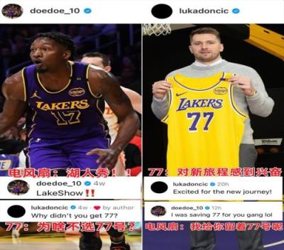 25年2月5日 东契奇被交易至湖人后发文:“对新旅程感到兴奋!”电风扇评论:“77号给你留着呢!”