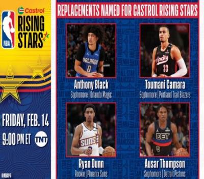 官方:瑞安邓恩、布莱克、卡马拉和奥萨尔汤普森替补进入新秀赛
