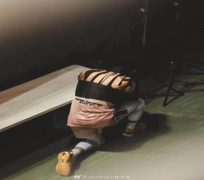 照片中林书豪背对镜头单膝跪地,配文写道:“诚实来讲这是我这个赛季最喜欢的一张照片。