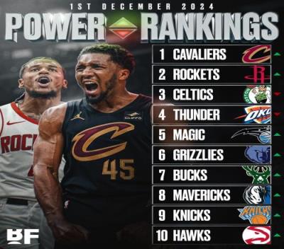 体育资讯12月3日报道宣称 美媒basketballforever更新战力榜前十:
