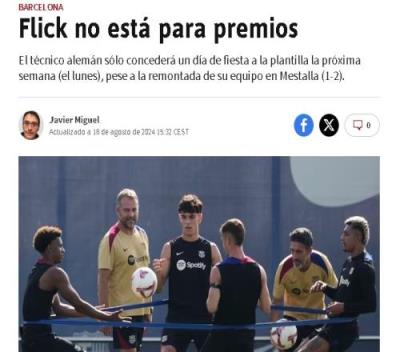 世体:弗里克拒绝给予额外假期,认为球员是专业人士而非孩子