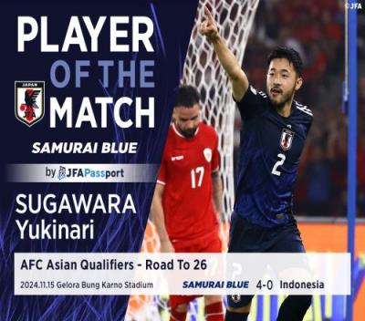 日本队官方:菅原由势当选日本队40印尼队一役全场最佳