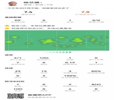改变打法!哈兰德数据:2射1正1助攻,3次关键传球,1次错失进球
