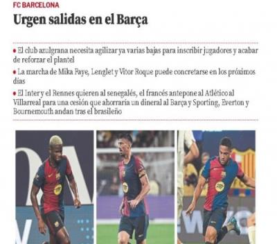 此外,巴萨还计划引进一名左边锋和可能的右后卫。
