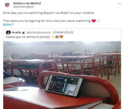 马竞官推也表示:“某一天你还在用手机看拜仁vs马竞的比赛。下一次,你就已经和这家俱乐部签约了。”
