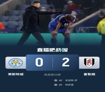 体育资讯01月19日报道宣称 英超第22轮,莱斯特城主场0-2不敌富勒姆,史密斯-罗和特劳雷各入一球。蓝狐联赛遭遇7连败,位列积分榜倒二。