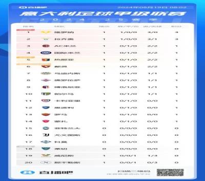 体育资讯08月19日报道宣 意甲首轮已结束8场比赛,目前仅维罗纳和拉齐奥全取三分,米兰双雄等12队战平,那不勒斯0-3翻车垫底。