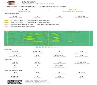 体育资讯1月5日报道宣称 本赛季英超第20轮,切尔西客场1-1水晶宫。本场比赛,帕尔默首发出战,贡献1粒进球,送出5次关键传球,但也有1次失误致丢球,还有17次丢失球权全场最多,评分7.3。