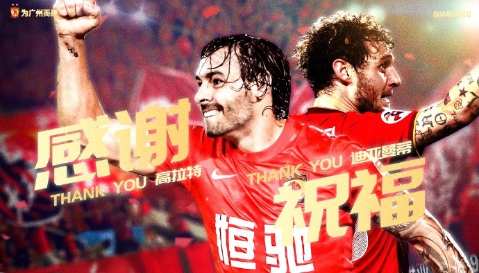 4月25日讯 广州队功勋外援迪亚曼蒂与高拉特先后宣布退役,球队在微博晒出海报向两位球员表示感谢并送上祝福。