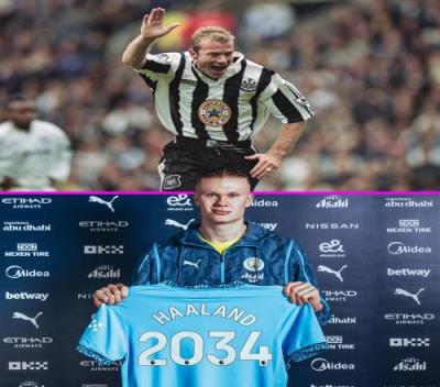 英超历史最佳射手目前属于阿兰-希勒,他一共轰入了260粒英超进球,而哈兰德的战绩为87场进79球。