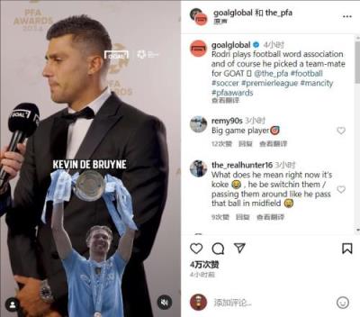 罗德里快问快答:德布劳内是历史最佳,哈兰德是最佳射手