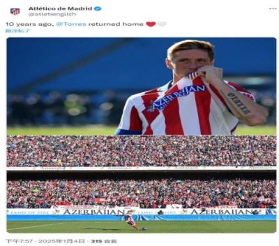 体育资讯1月4日报道宣称 马竞官方更新社媒动态,晒出费尔南多-托雷斯10年前回归马竞的照片。