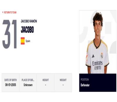 雅各布-拉蒙出生于2005年1月6日,司职中后卫的位置。雅各布-拉蒙尚未代表皇马一线队在正式比赛中有过出场,但是他在今年夏天美国行期间得到了出场机会,并且在对阵亚特兰大的欧超杯中进入了大名单。