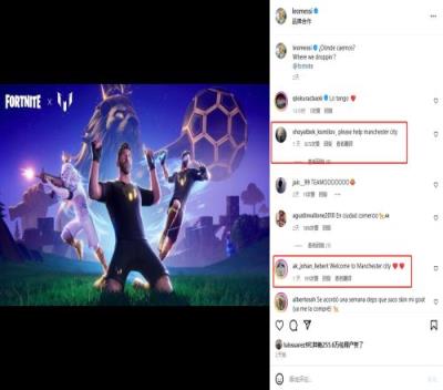 体育资讯12月25日报道宣称 梅西近日在社媒发布《堡垒之夜》联动皮肤,值得一提的是有众多球迷在评论区表示,希望梅西能够去曼城帮助球队摆脱困局。