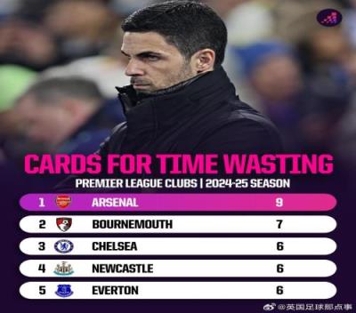OptaAnalyst:英超本赛季因拖延时间吃牌数