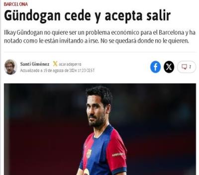 阿斯:京多安可能离开巴萨,俱乐部需要腾出薪资空间注册其他人
