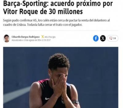 阿斯:葡体接近3000万欧签下罗克,巴萨不够满意&将保留回购选项