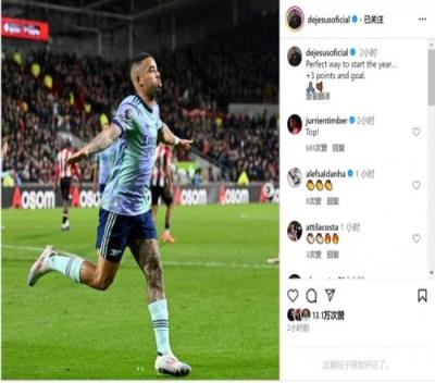 体育资讯1月2日报道宣称 英超第19轮比赛,热苏斯破门,帮助阿森纳客场3-1击败布伦特福德。