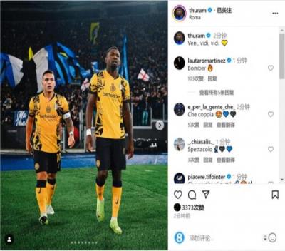 图拉姆在社交媒体上晒出与劳塔罗的合照,配文:“我来,我见,我征服。”